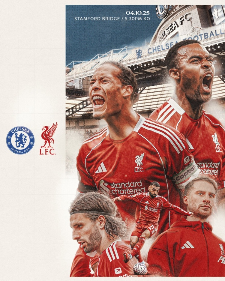 利物浦官方社媒发布了为此役制作的海报,范迪克、萨拉赫、麦卡利斯特、赫拉芬贝赫、索博斯洛伊出镜。