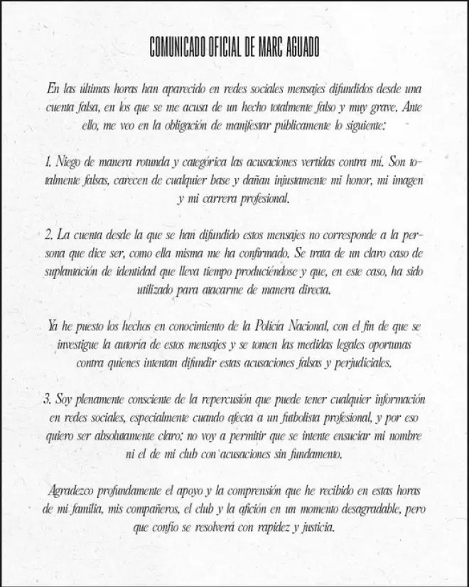 10月4日讯 埃尔切球员马克-阿瓜多近日发布官方声明,坚贞否定了外交媒体好意思妙传的对于他纳闷和阻扰又名女性的指控。
