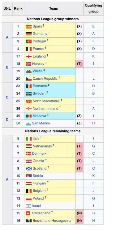 这是因为源于欧洲区复杂的寰宇杯附加赛规则。附加赛限额由12支预选赛小组第二,以及4支未能通过预选赛晋级的、在2024-25赛季欧国联中收货最佳的小组冠军递补产生。圣马力诺凭借在欧国联D级别联赛中历史性地赢得小组头名,取得了参与递补排位的经验。