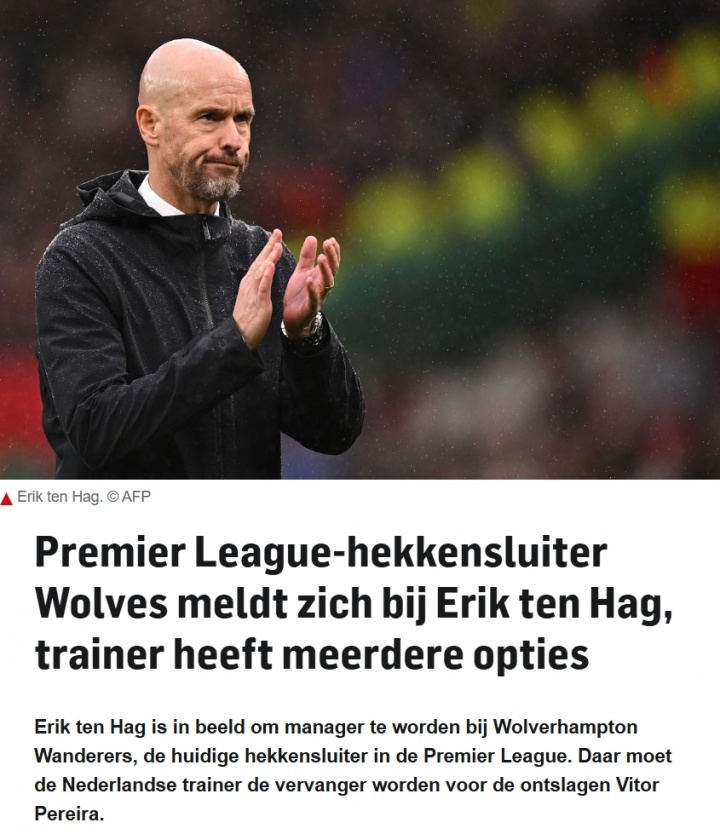 11月04日讯 据荷兰媒体《共同日报》报说念,前曼联主帅滕哈赫有望重返英超,捏教现在英超垫底的狼队。
