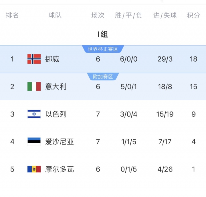 本届世初赛,挪威6战全胜进29球丢3球,净胜球26球,比第二名意大利整整多出了16个净胜球。