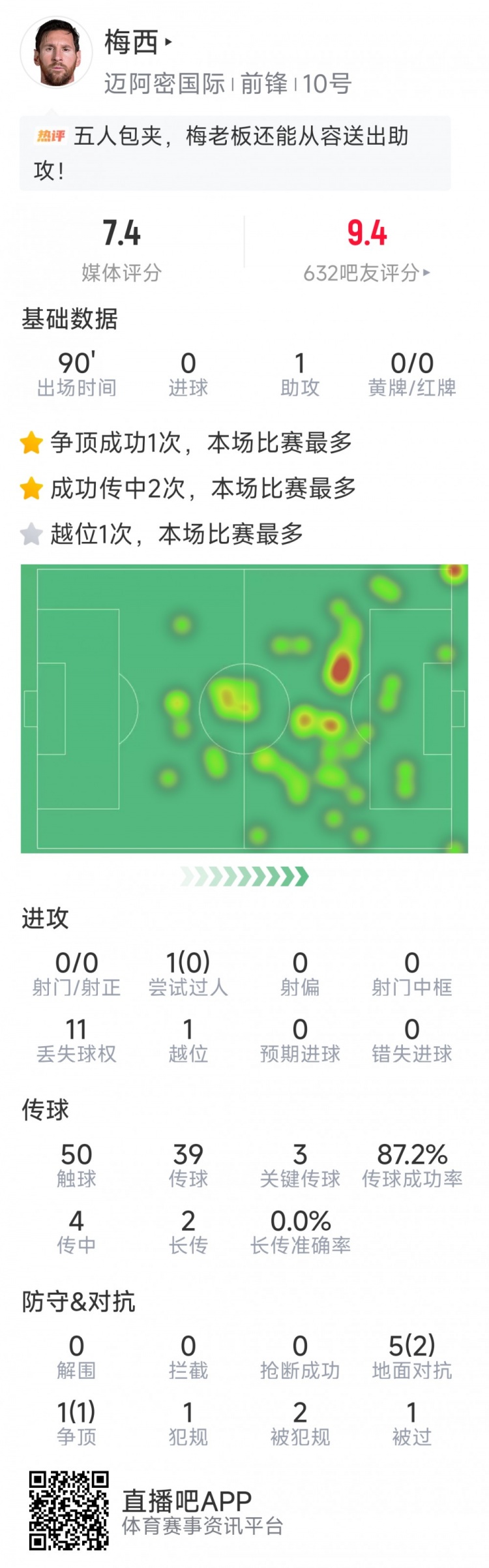 11月30日讯 在好意思职联分区决赛,迈阿密海外5-1大捷纽约城,以下为梅西本场数据: