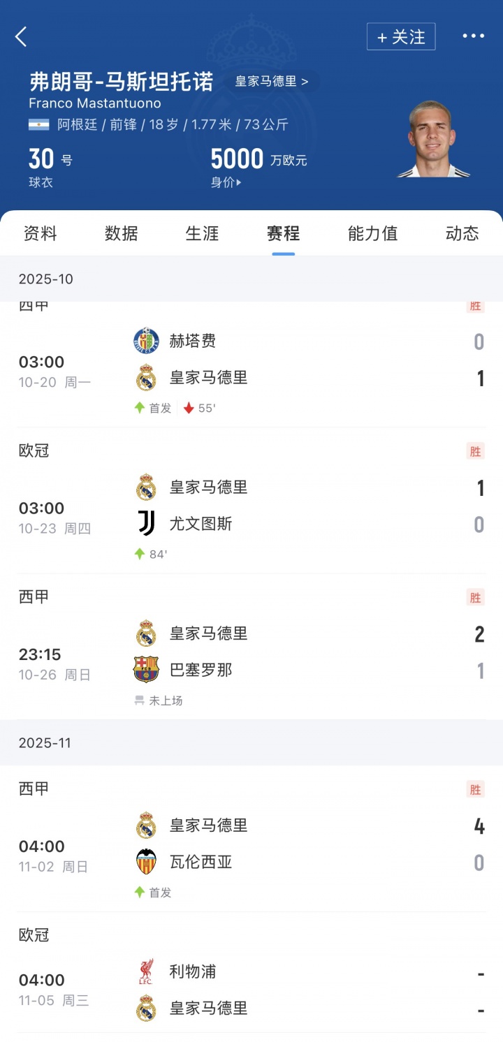 马斯坦托诺本赛季在西甲出场9次打入1球,他莫得出战皇马2-1巴萨的比赛,但在皇马4-0瓦伦的比赛中首发打满全场。