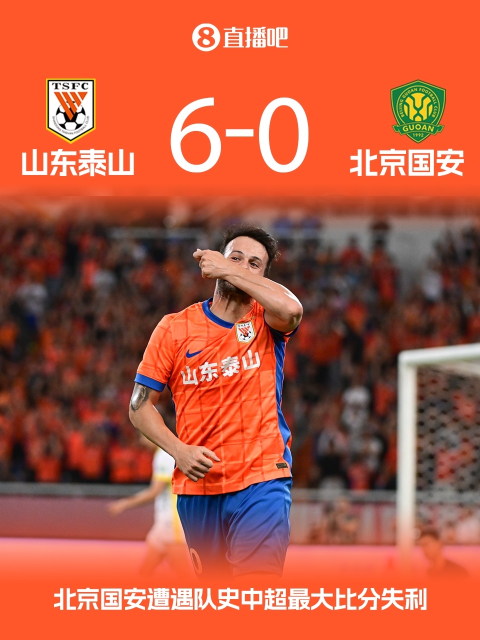 08月31日讯 中超第23轮,国安客场0-6不敌泰山。