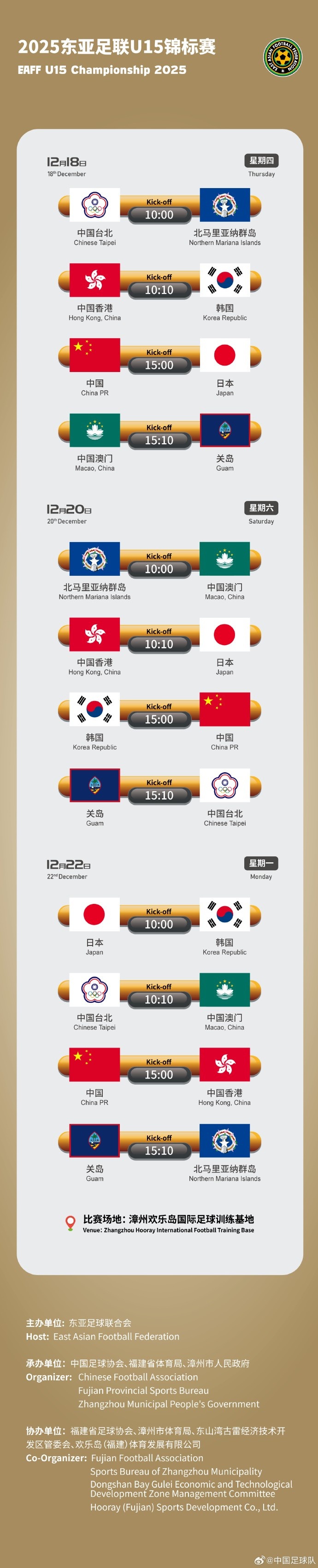 经赛区彩选及东亚足联本质,中国足协现说明漳州市为2025东亚足联U15锦标赛经办城市。