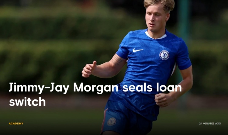 杰伊-摩根现年19岁,司职中锋、边锋,他在2023年2月加盟切尔西青训,上赛季后半段曾被外租至吉灵汉姆效用,各项赛事出战16场比赛,打进2球。
