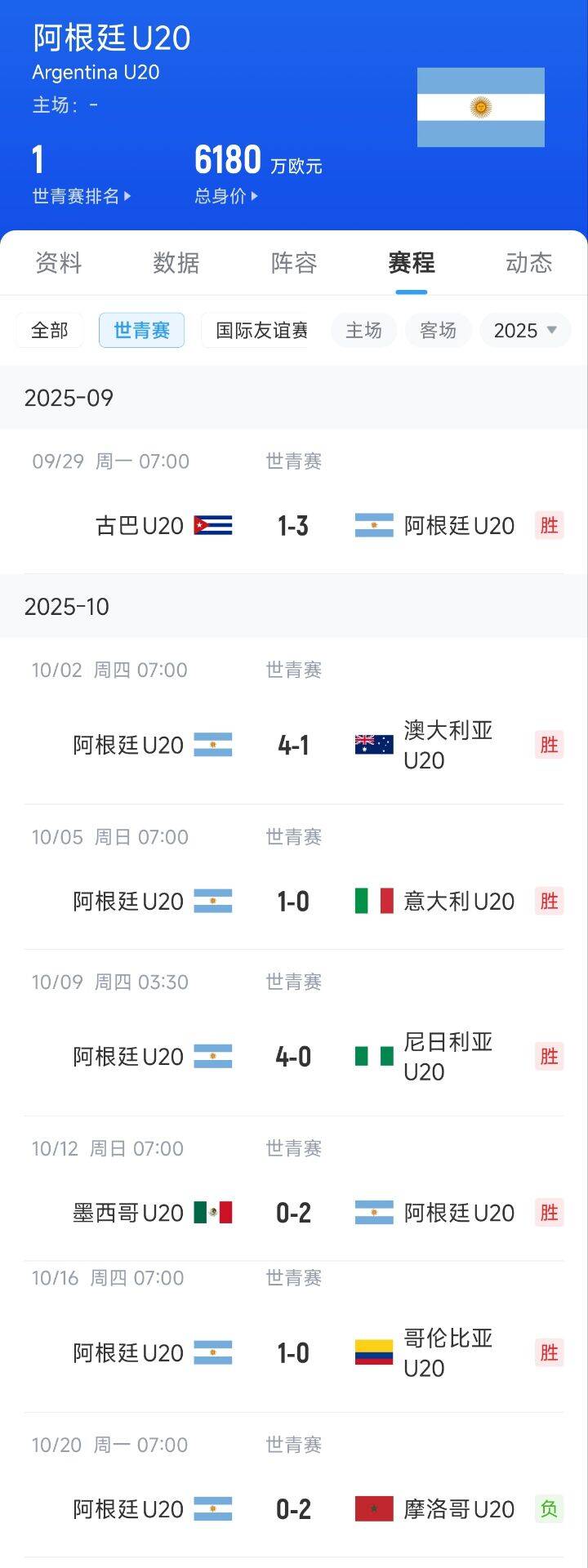 本届世青赛,阿根廷保捏全胜战绩晋级决赛,6场狂轰15球仅丢2球,其中淘汰赛0失球!可是最终决赛遭零封+丢2球。