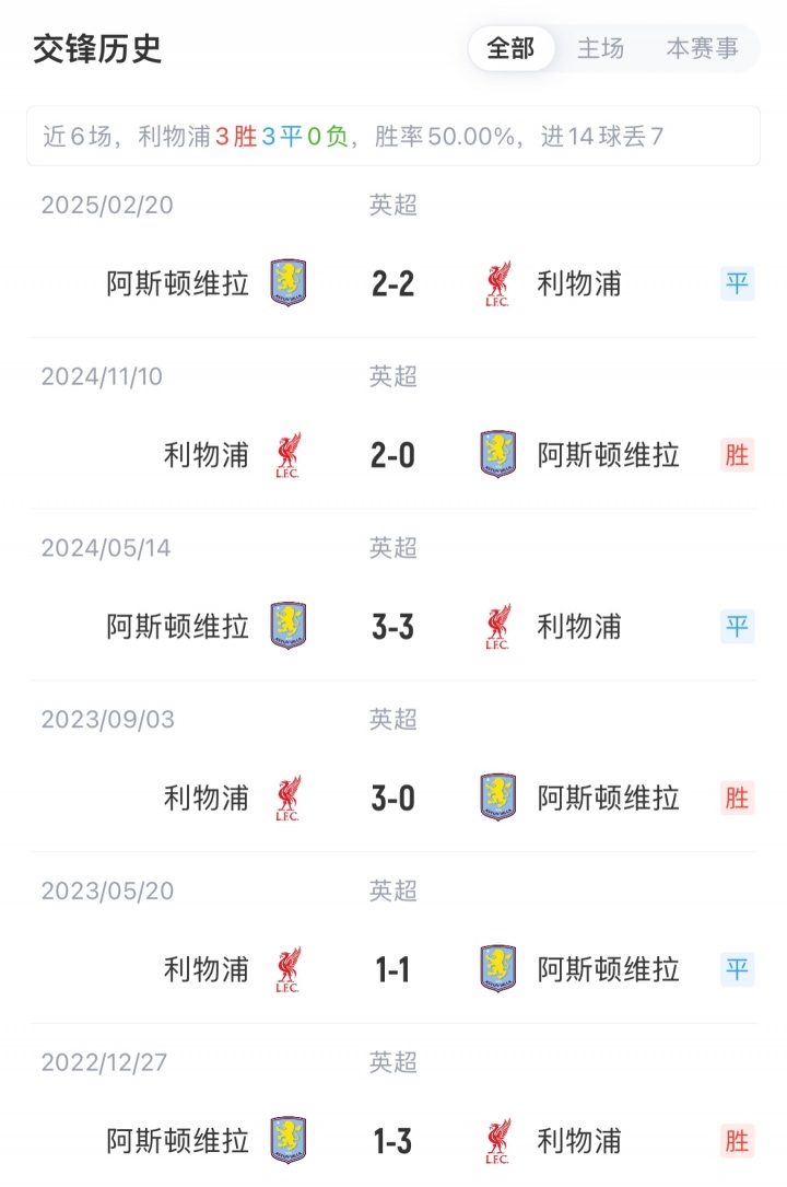 利物浦联赛5胜4负积15分,近4轮遭受4连败;维拉联赛4胜3平2负积15分,现在联赛4连胜。利物浦对阵维拉已流畅10场不败(7胜3平)。