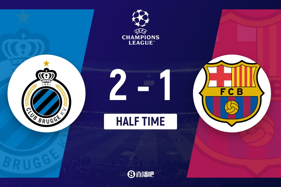 上半场伤停补时2分钟,半场适度,巴萨暂1-2布鲁日。