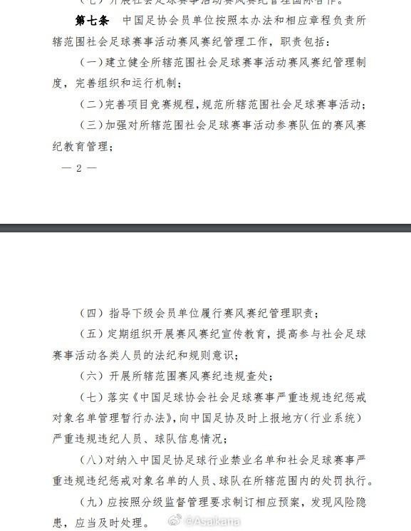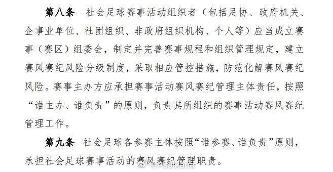 固然了,凡是对中国足协责任有点了解,懂点新体育法的,无意看过这个文献的,王人不至于念念出个这样搞笑的干系。因为这个文献出台布景是苏超出生之前的事情,内部以至证明真确法规了分好了中国足协和场合足协、社会办赛方的权益义务,以至法规场合赛事垄断者才是赛风赛纪第一背负东谈主,雄壮球迷忍无可忍的赛风赛纪问题现时捋顺了明确的责任单干,反而对苏超这类社会赛事来说是个大大的功德。